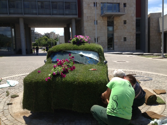 Με αφορμή τις εκδηλώσεις για το 3ο Green Party, από σήμερα, την είσοδο του δημαρχείου της Θεσσαλονίκης κοσμεί ένα «ανθισμένο» αυτοκίνητο.